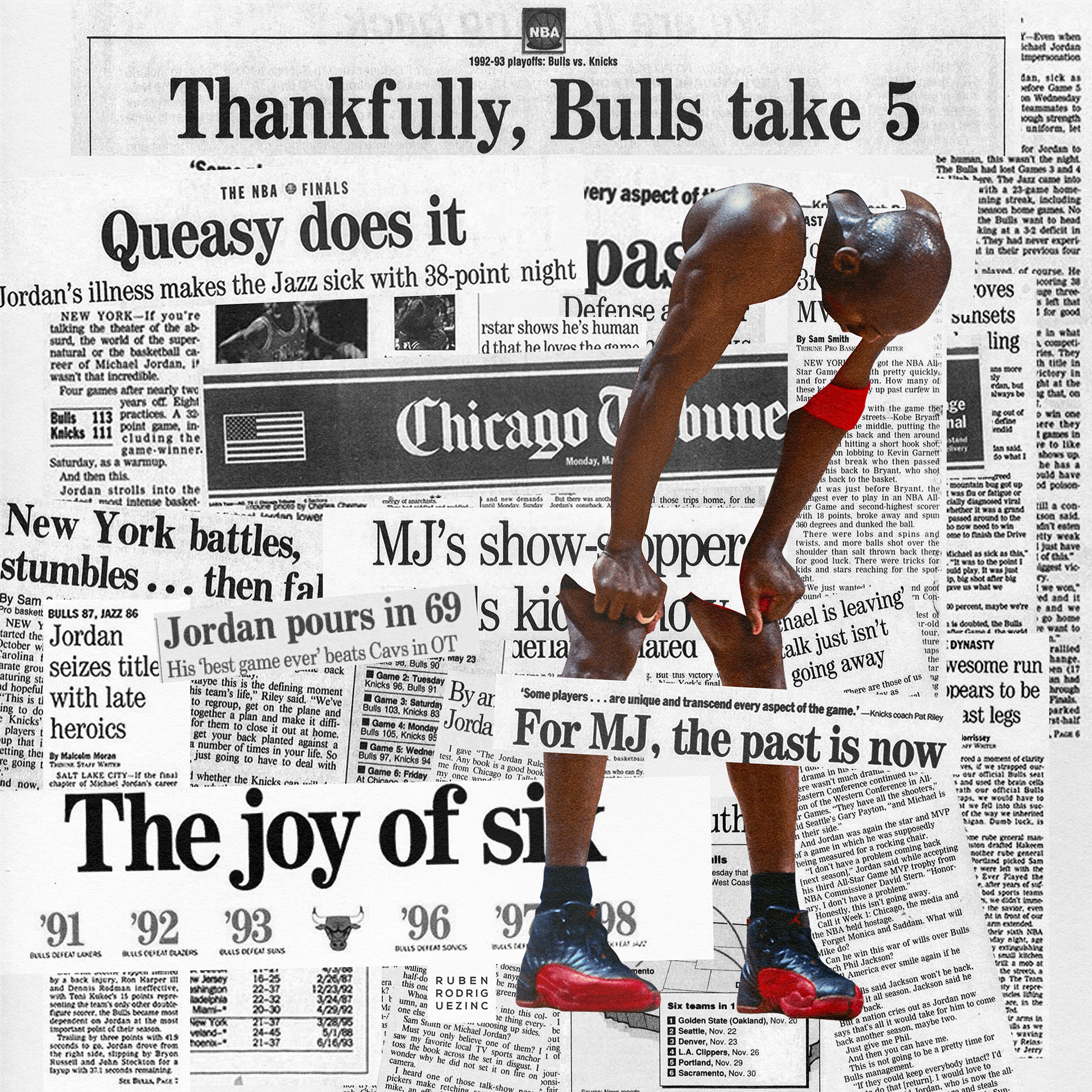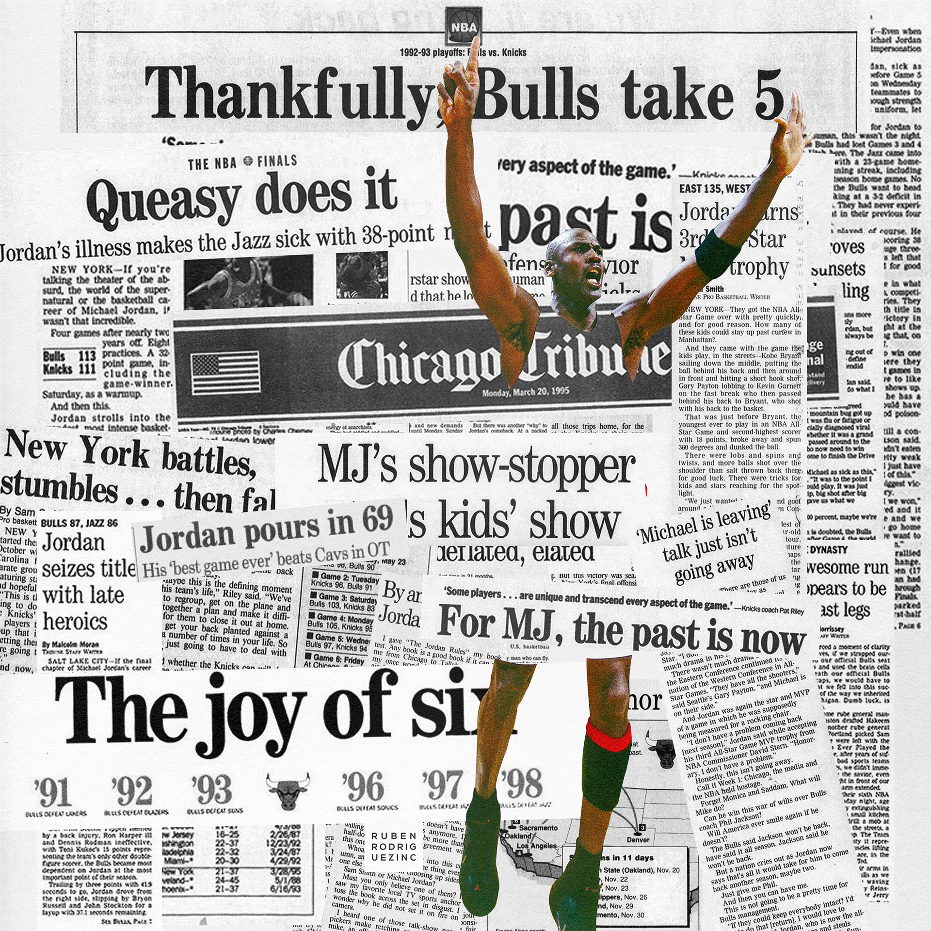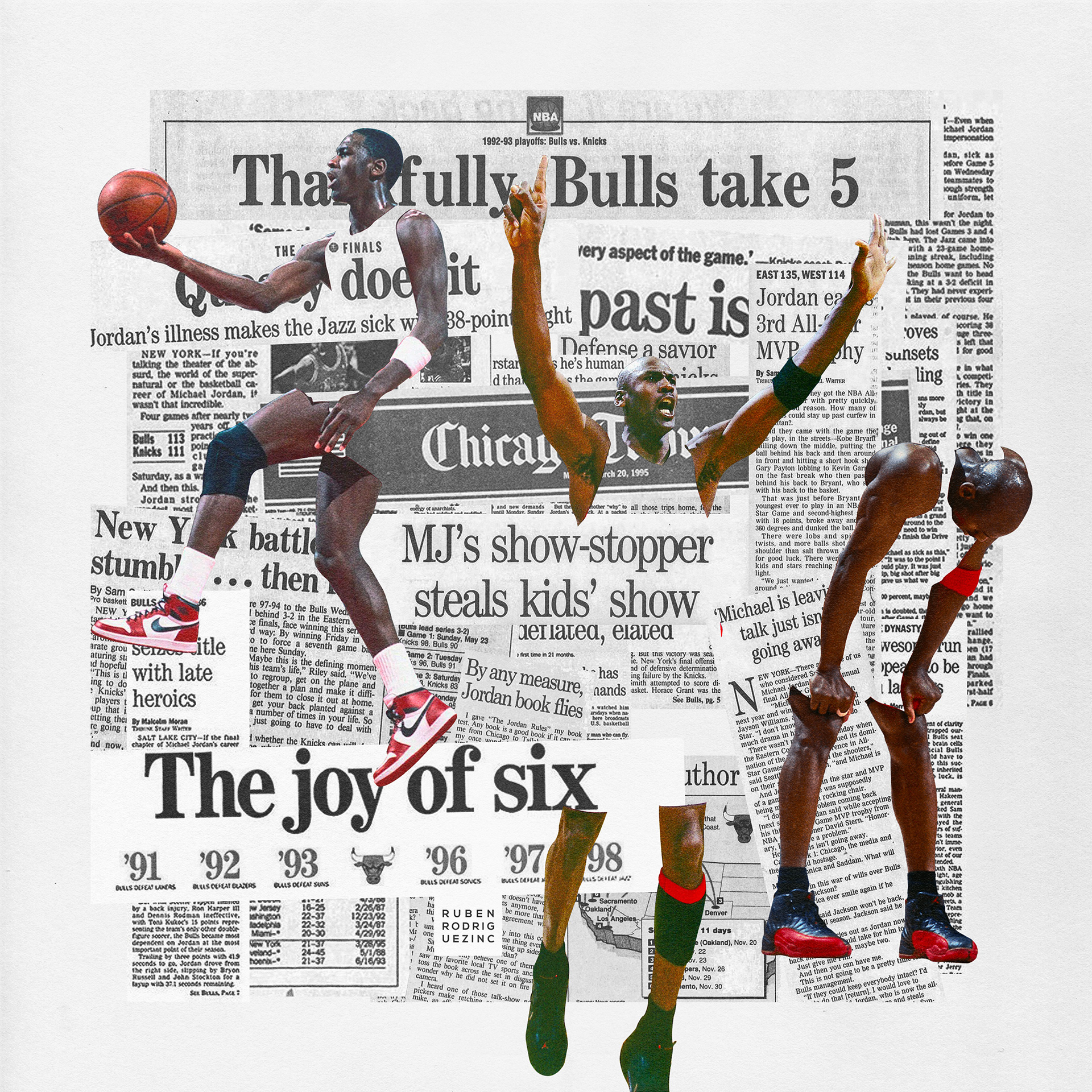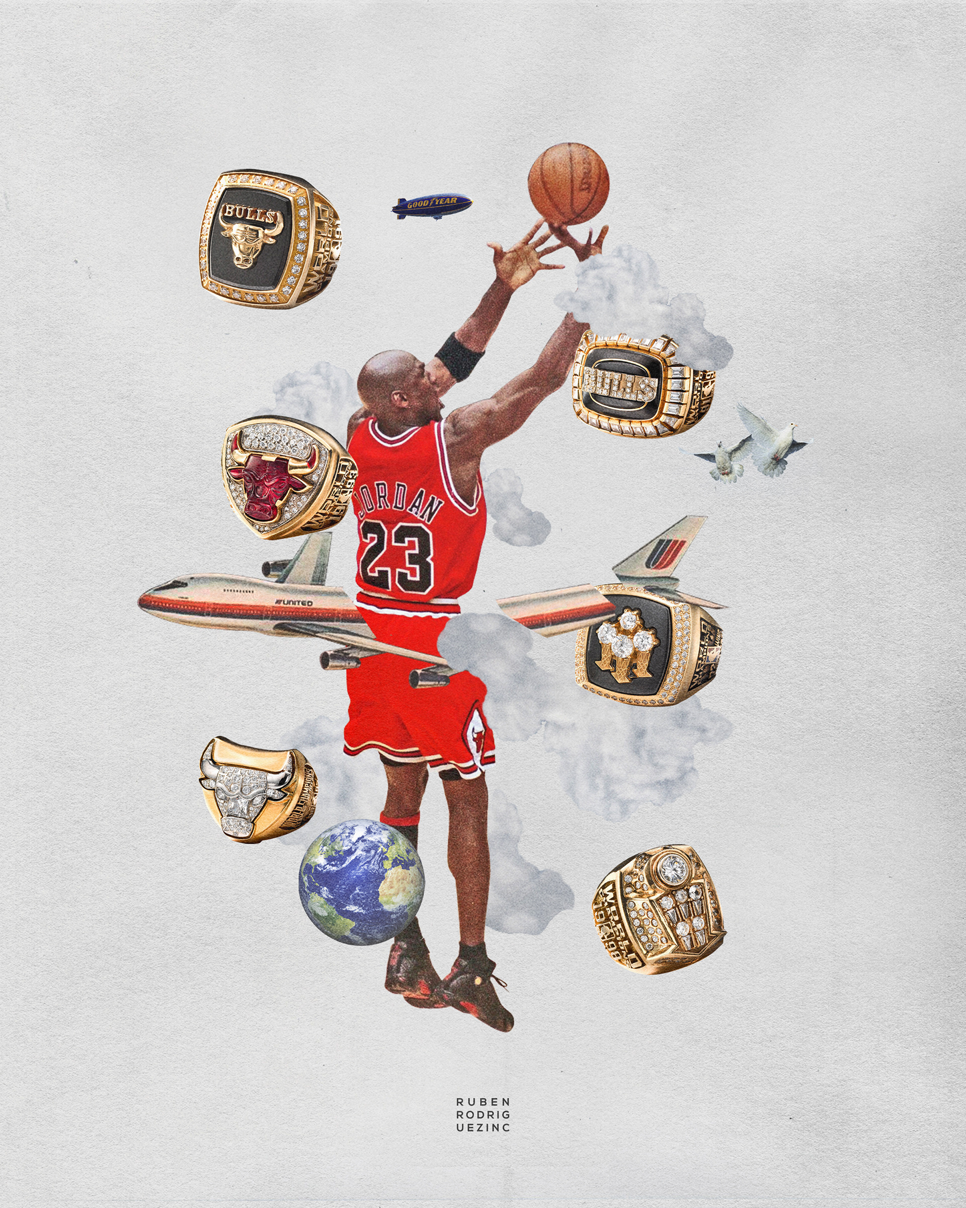An ongoing passion project of mine, this collection celebrates my admiration for Michael Jordan and the captivating imagery and narratives associated with him. Through collage artistry, I have crafted a tribute to his illustrious career, commemorating his remarkable achievements, and immortalizing his iconic sneakers.