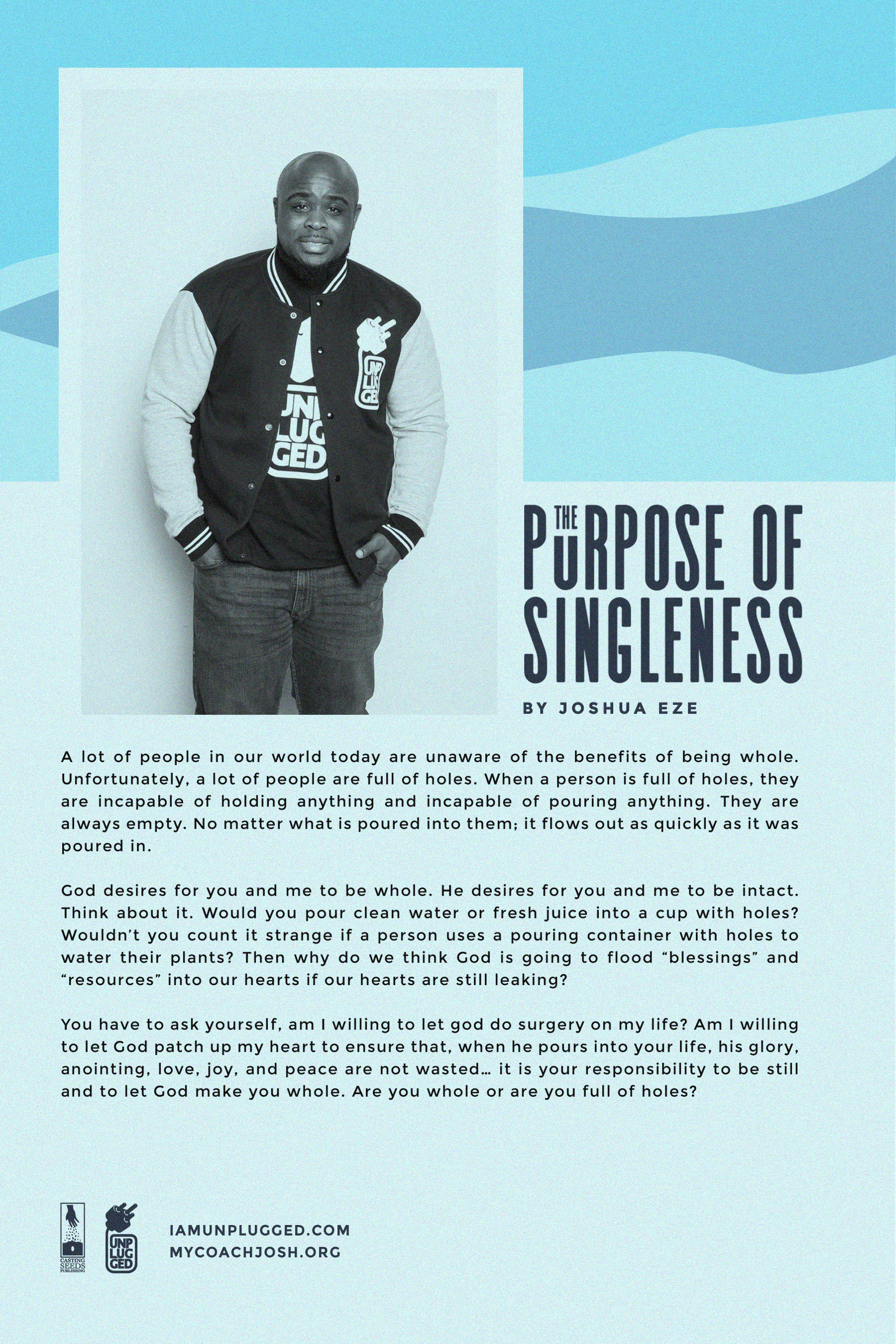 Author Joshua Eze's 2016 The Purpose of Singleness Book - Front Cover